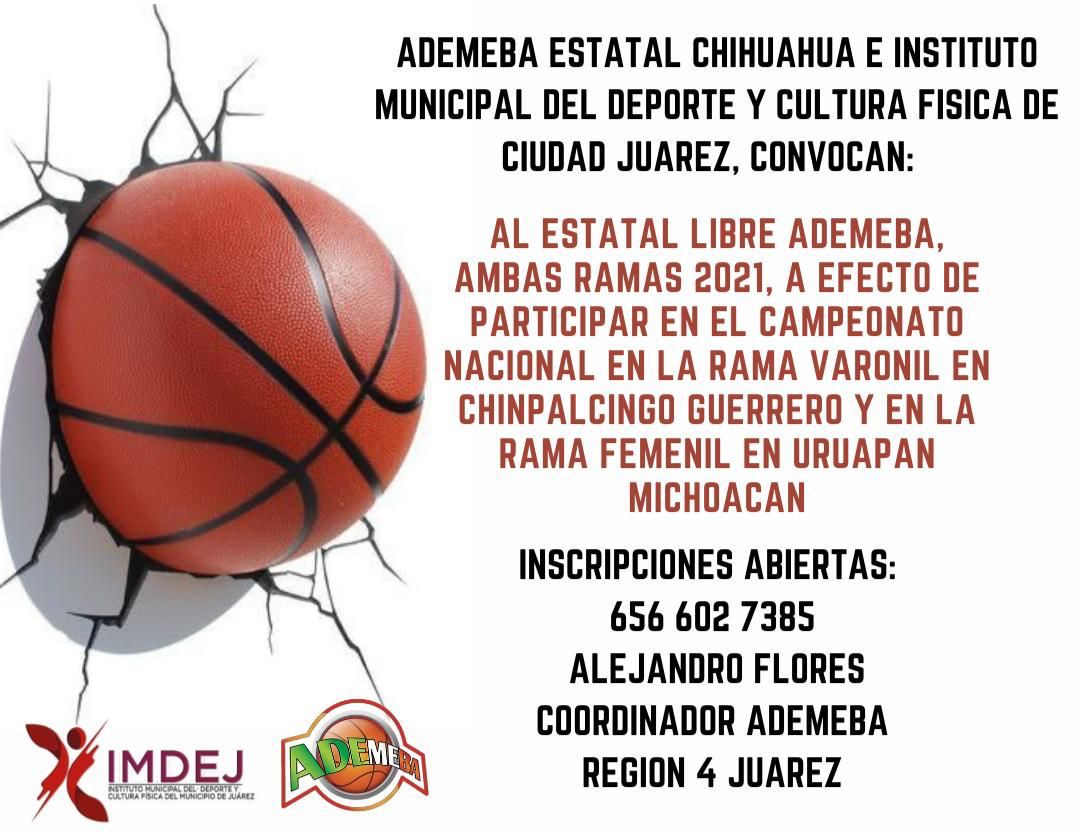 Chihuahua, Chihuahua.- Ciudad Juárez, será la sede por segunda ocasión del Campeonato Estatal de Básquetbol, organizado por la Asociación Deportiva Mexicana de Básquetbol (ADEMEBA), en coordinación con el Instituto Municipal del Deporte y Cultura Física de Juárez, en honor a “Enrique “Kiki” Romero”, por el vigésimo noveno aniversario de su fallecimiento.
