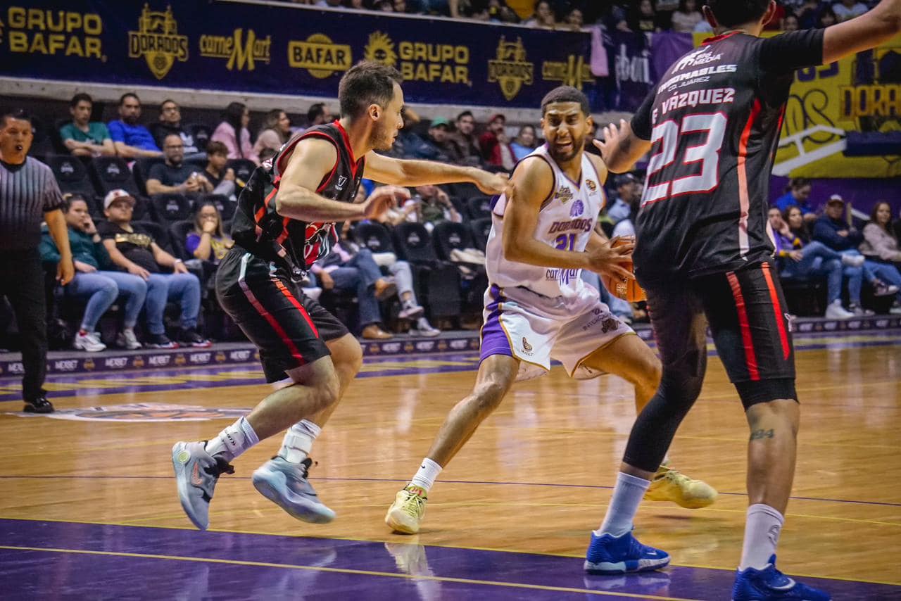 Chihuahua, Chihuahua.- El equipo capitalino Dorados de Chihuahua, venció 99-79 a Indomables de Ciudad Juárez en juego celebrado la noche del viernes en el Gimnasio Manuel Bernardo Aguirre, además el cuadro capitalino alcanzó su octavo triunfo de la campaña 2023 en la Liga LBE Mexbet.