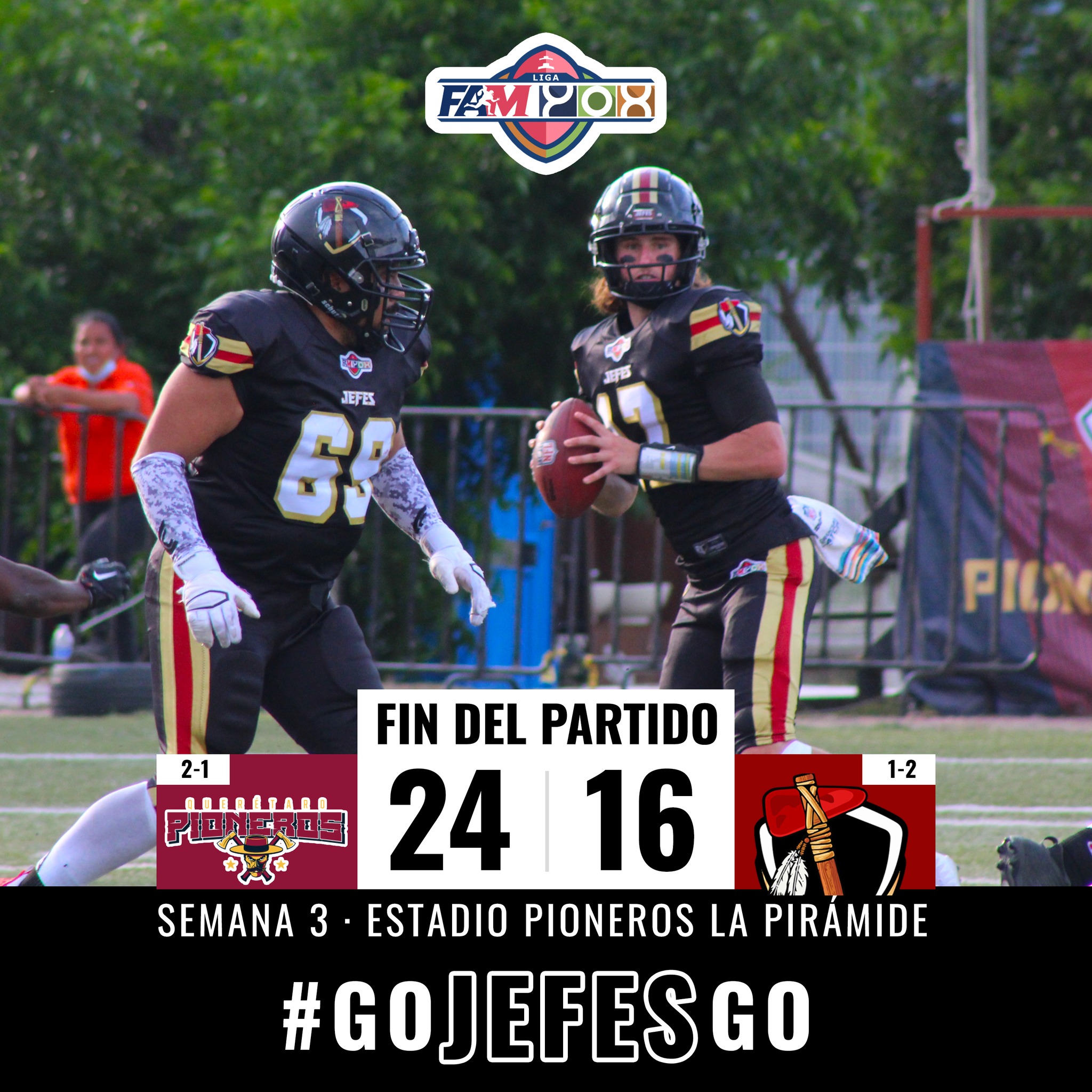 Querétaro.- En su tercer compromiso de la Semana 3 de la Temporada 2022 del Fútbol Americano de México FAMYOX, Jefes Pro Football acudió en su calidad de visitante para enfrentar a Pioneros de Querétaro en el Deportivo El Pueblito.