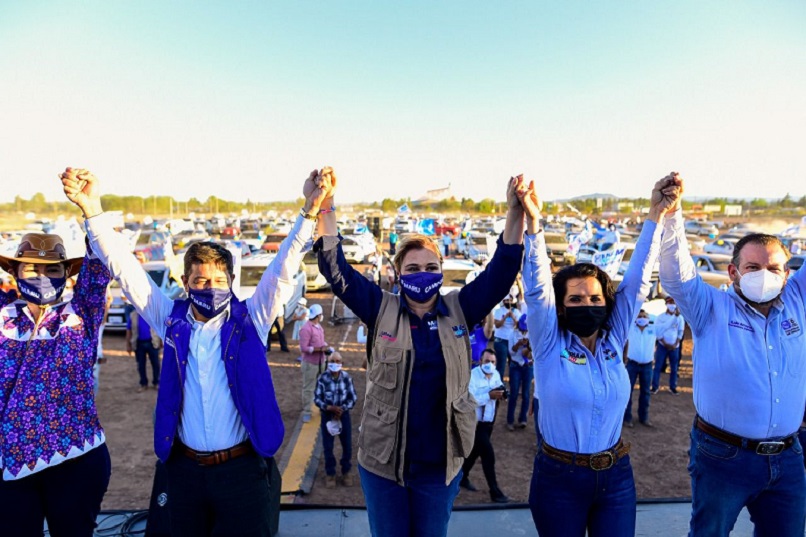 Nuevo Casas Grandes, Chihuahua – Como parte de su gira de acercamiento a los chihuahuenses de todos los rincones del estado, Maru Campos. Candidata a la gubernatura por la coalición “Nos Une Chihuahua”, del PAN-PRD, encabezó en un automitin en Nuevo Casas Grandes en donde presentó sus propuestas encaminadas al apoyo al campo y a la infraestructura carretera.