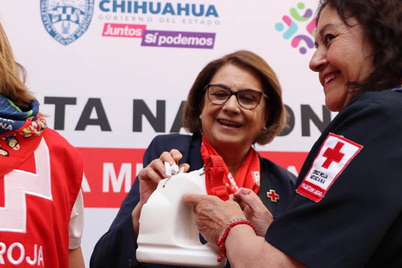 El evento fue encabezado por la presidenta honoraria de la Cruz Roja y del DIF Estatal, María Eugenia Galván Antillón, acompañada por el delegado estatal de la institución en Chihuahua, Óscar Corral Pérez; el secretario de Salud, Gilberto Baeza Mendoza; la secretaria de Educación y Deporte, Sandra Gutiérrez y el director del DIF municipal, Mario García.