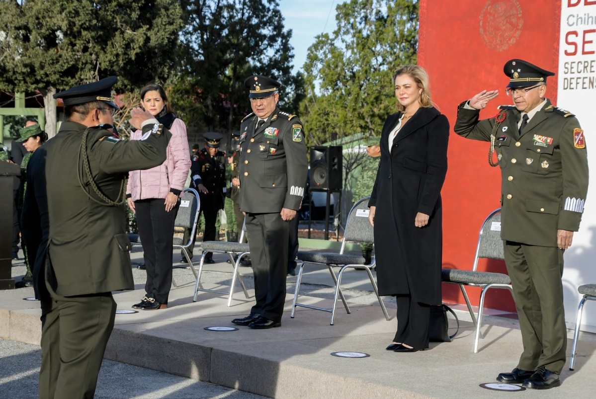 En su mensaje la Gobernadora de Chihuahua, señaló estar agradecida por el apoyo brindado por la Secretaría de la Defensa Nacional, tanto al estado como al municipio, y ratificó su compromiso de continuar trabajando en coordinación por la seguridad de los chihuahuenses. En el acto, estuvieron presentes, la Magistrada Myriam Victoria Hernández Acosta, Presidenta del Tribunal Superior de Justicia del Estado; la Diputada Adriana Terrazas Porras, Presidenta del Congreso del Estado; Marco Bonilla Mendoza, Presidente Municipal de Chihuahua y General Marco Antonio Zaragoza Vázquez, Comandante de la Región Aérea del Noreste.