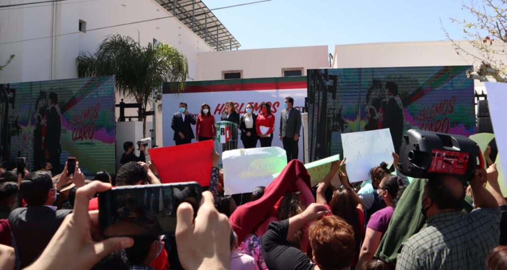 “Es indignante que las historias se repitan y se repitan en unos y otros gobiernos sin que nada suceda, sin que nada ocurra; la exigencia, es restablecer el Estado de Derecho, terminar con la impunidad y la justicia selectiva”, resaltó “Chela” Ortiz en clara referencia a la candidata del PAN-PRD a la gubernatura, María Eugenia Campos Galván, quien, bajo amparos, ha logrado de evadir varias audiencias penales.