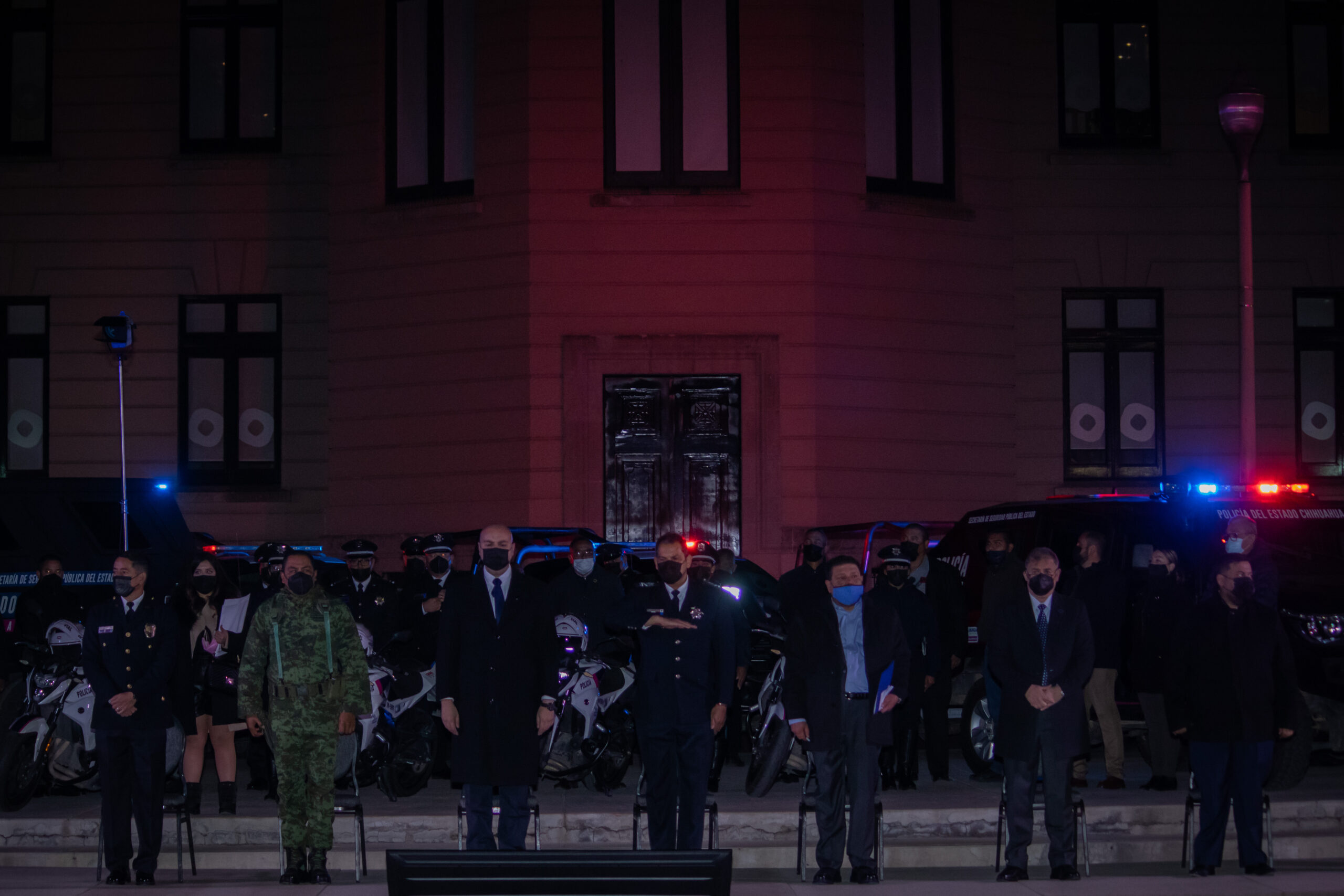 Chihuahua, Chihuahua.- El Gobierno del Estado a través de la Secretaría de Seguridad Pública del Estado (SSPE), llevó a cabo un sentido homenaje a los elementos policiacos del Estado.