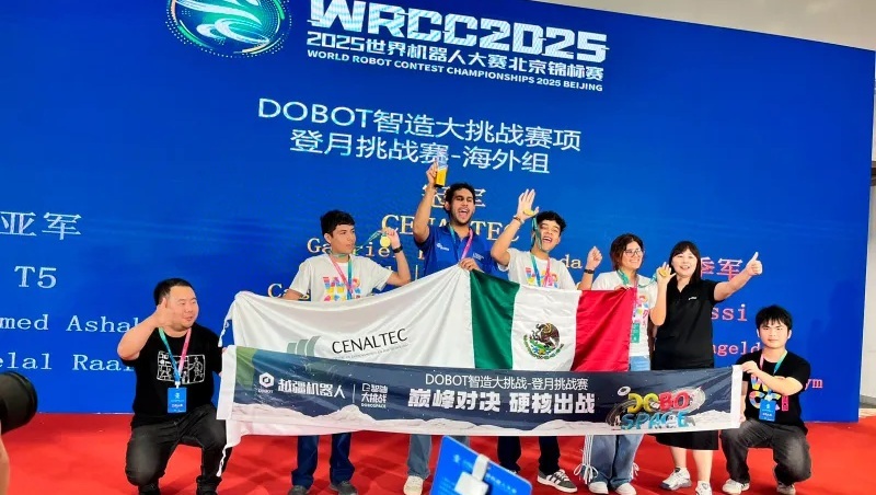 Chihuahua, Chihuahua – El equipo de INADET/Cenaltec, conformado por estudiantes del CECyTECH Plantel 20 y del CBTis 122, se coronó Campeón Mundial en la categoría Media Superior del reto “DOBOT Intelligent Manufacturing Challenge – Moon Landing Challenge”, celebrado en el marco de la World Robotics Conference 2025 (WRCC) en Beijing, China.