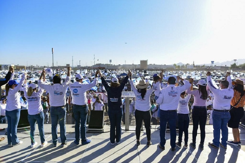 Delicias, Chihuahua – Arropada por miles de delicienses y habitantes de la zona centro – sur del estado, la candidata a la gubernatura por la coalición “Nos Une Chihuahua”, Maru Campos, encabezó un auto mitin de más de 1,300 vehículos, en el municipio de Delicias con motivo de su cierre de campaña.