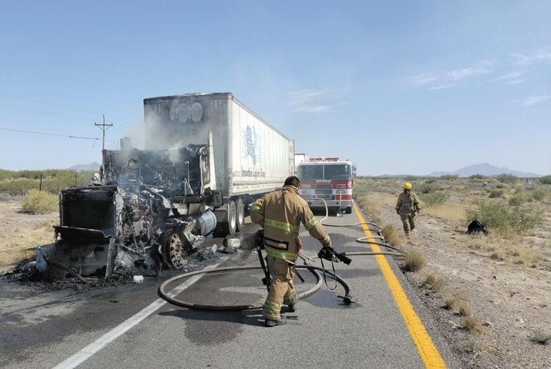 Chihuahua, Chihuahua – Elementos de la Guardia Nacional, cerraron el sentido norte a sur de la carretera Ciudad Juárez-Ahumada, debido al incendio en la cabina de un tractocamión, ocurrido a la altura del kilómetro 260, informó la Coordinación Estatal de Protección Civil (CEPC).