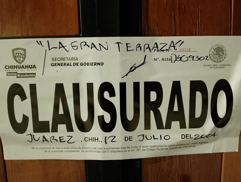 – Tienda de abarrotes “Súper Six Texas”, por violación de giro (Chihuahua)