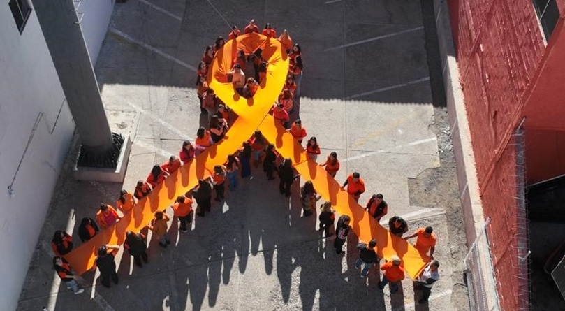Chihuahua, Chihuahua – En el marco del Día Internacional para la Eliminación de la Violencia contra las Mujeres, que se evoca el 25 de noviembre de cada año, personal del Instituto Chihuahuense de las Mujeres (ICHMujeres) formó un moño naranja humano con el objetivo de invitar a la sociedad a tomar conciencia y visibilizar la problemática.