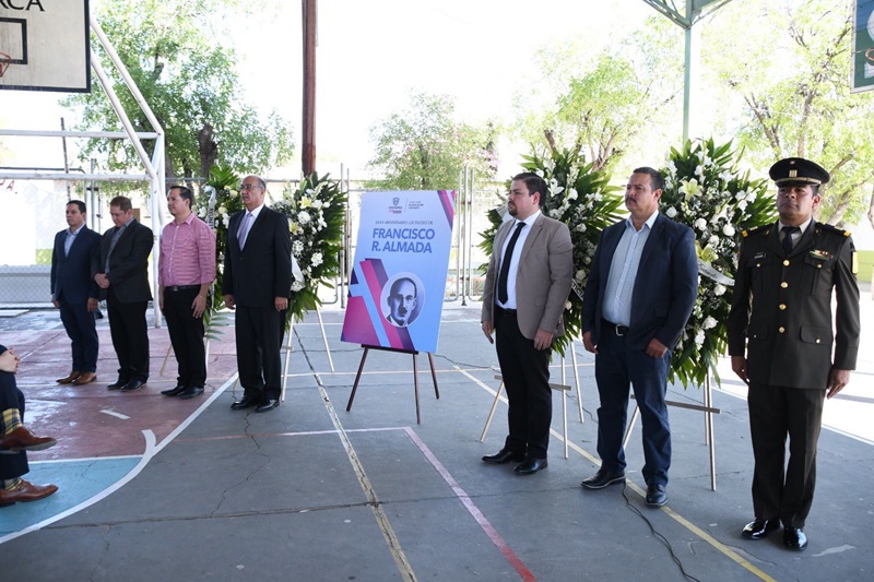 Chihuahua, Chihuahua – Con el objetivo de promover el conocimiento de los hechos históricos y de los actores que contribuyeron a la formación de la nación, la Secretaría de Educación y Deporte (SEyD), conmemoró el 35 aniversario luctuoso del exgobernador de Chihuahua, Francisco R. Almada.