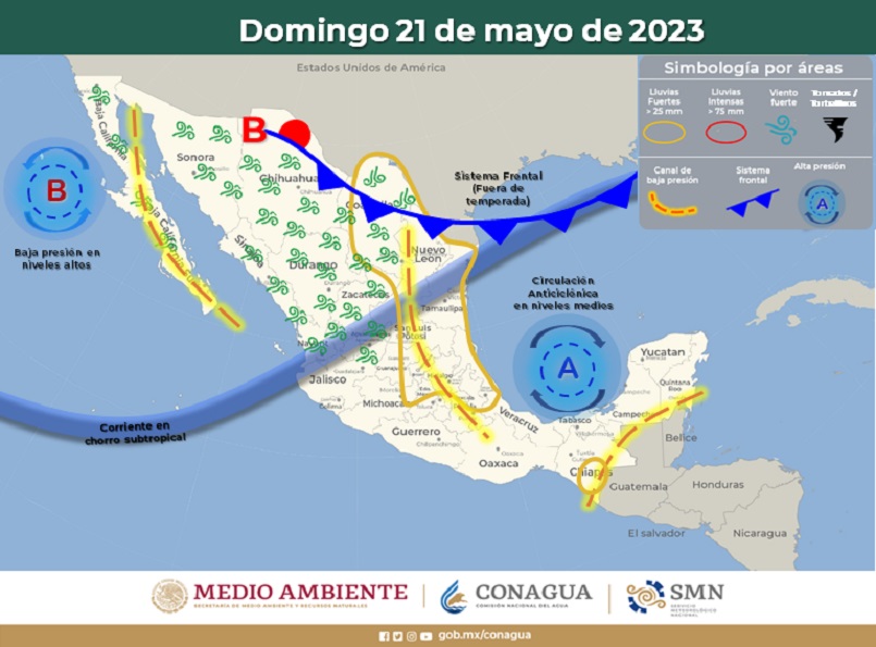 Temperaturas esperadas para este domingo 21 de mayo: Chihuahua 30/15, Juárez 31/19, Janos 30/12, Madera 24/8, Temósachic 26/6, Cuauhtémoc 24/10, Ojinaga 32/19, Delicias 31/16,