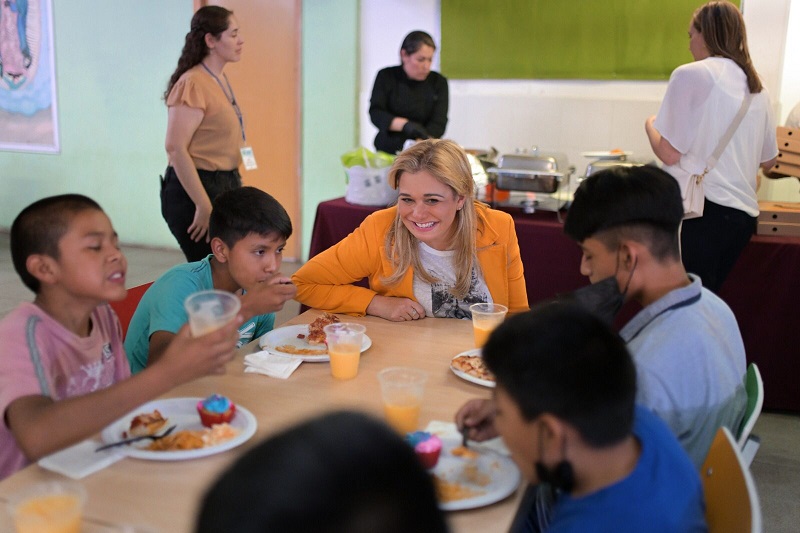 Como parte de la visita en la que estuvo acompañada por la presidenta del DIF Estatal, María Eugenia Galván, la mandataria estatal compartió con los menores el pan y la sal, y recorrió las instalaciones.