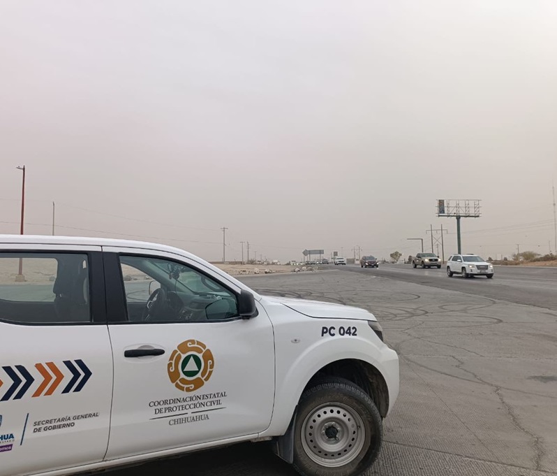 Chihuahua, Chihuahua – La Coordinación Estatal de Protección Civil (CEPC), emitió una alerta preventiva ante los fuertes vientos con ráfagas de hasta 85 kilómetros por hora (km/h), pronosticados para la tarde de hoy, mismos que podrían generar tolvaneras en diversas partes de la entidad.
