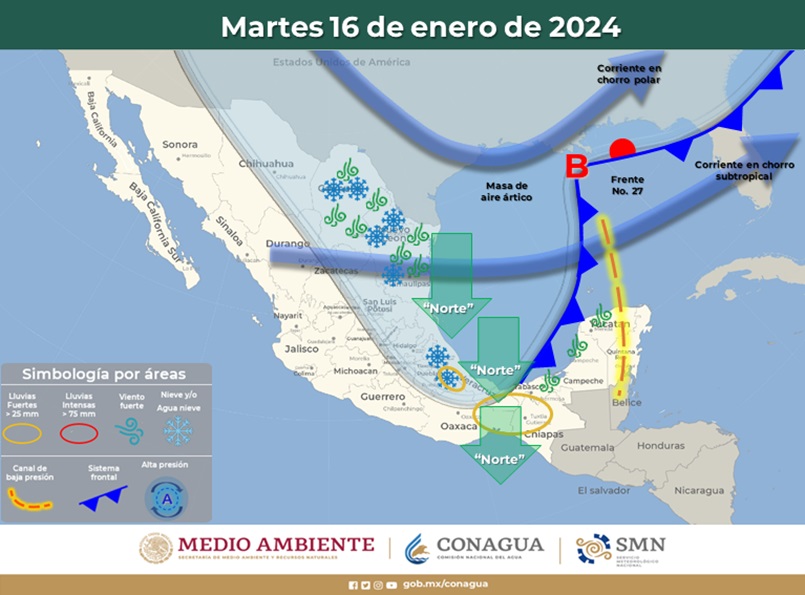 Estas condiciones climatológicas se derivan del paso de una onda gélida ártica que afectará a la mayor parte del territorio estadounidense, a las regiones del noreste del país y a una pequeña franja al oriente y noreste de Chihuahua.
