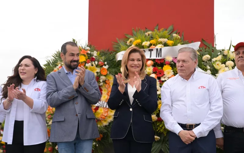 Al pie de La Guirnalda, escultura ubicada en las avenidas Ocampo, y Deza y Ulloa, la mandataria estatal se comprometió a mantener el clima de paz laboral que prevalece en la entidad, así como las condiciones de competitividad para la atracción de más inversiones.