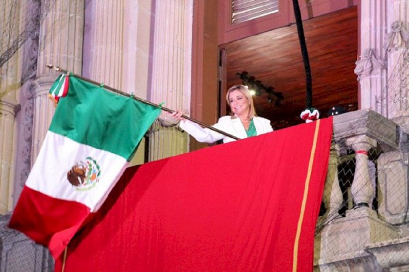 Chihuahua, Chihuahua – María Eugenia Campos Galván, encabezó su primera ceremonia del grito de Independencia esta noche.