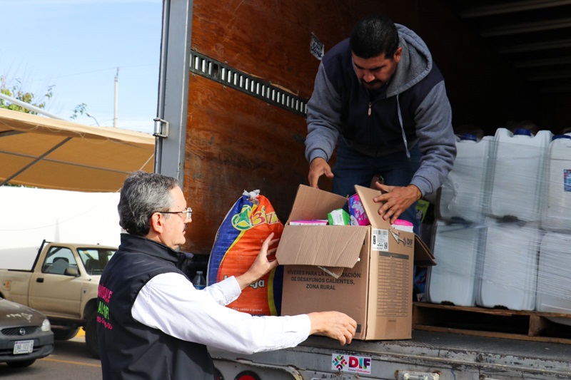 Por iniciativa de la presidenta del DIF Estatal, María Eugenia Galván Antillón, se exhortó a las presidentas de los DIF Municipales a formar una cadena de ayuda para brindar este apoyo, lo que dio como resultado la captación de estas 10 toneladas de ayuda.