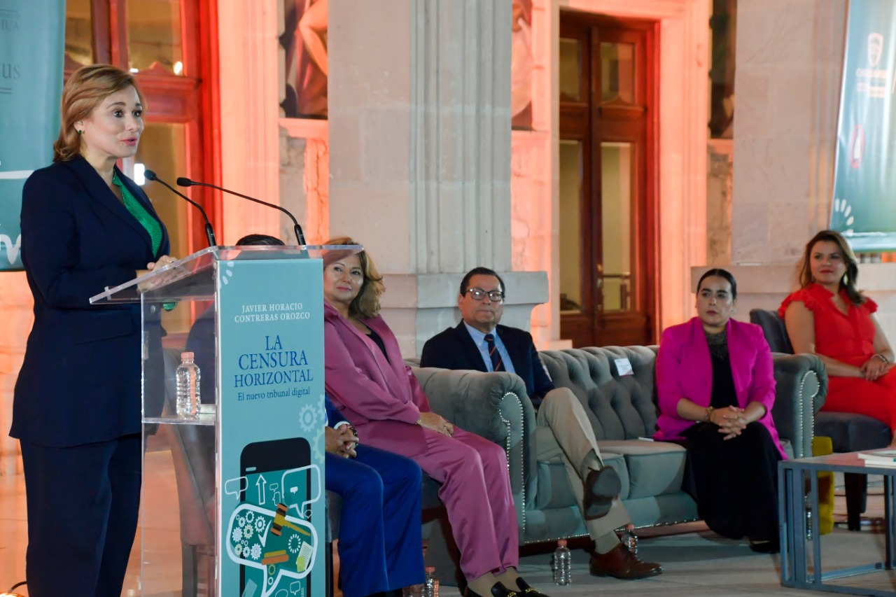 Chihuahua, Chihuahua.- La Gobernadora Maru Campos Galván, al participar como ponente en la presentación del libro “La Censura Horizontal”, del periodista y académico chihuahuense Javier Contreras Orozco, resaltó que su administración seguirá trabajando en instaurar una comunicación genuinamente democrática.