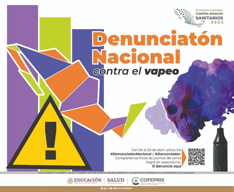 De igual forma, la Coespris exhorta a la ciudadanía a sumarse a los esfuerzos, a través del “Denunciatón Nacional contra el vapeo”, en el que se podrá denunciar a los establecimientos y puntos de venta de los aparatos.