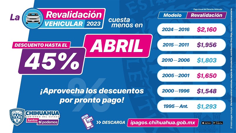 Chihuahua, Chihuahua – La Secretaría de Hacienda de Gobierno del Estado invita a la población a que aproveche el descuento que se ofrece hasta el día 30 de abril.