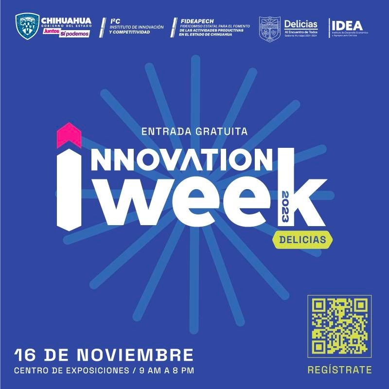 Innovation Week es organizado por la SIDE y el Gobierno Municipal de Delicias, con el apoyo de la Dirección de Emprendimiento y Desarrollo Empresarial del Gobierno del Estado; el Instituto de Desarrollo Económico y Agropecuario de Delicias (IDEA); el Instituto de Innovación y Competitividad (I2C), y el Fideicomiso Estatal para el Fomento de las Actividades Productivas en el Estado de Chihuahua (Fideapech).