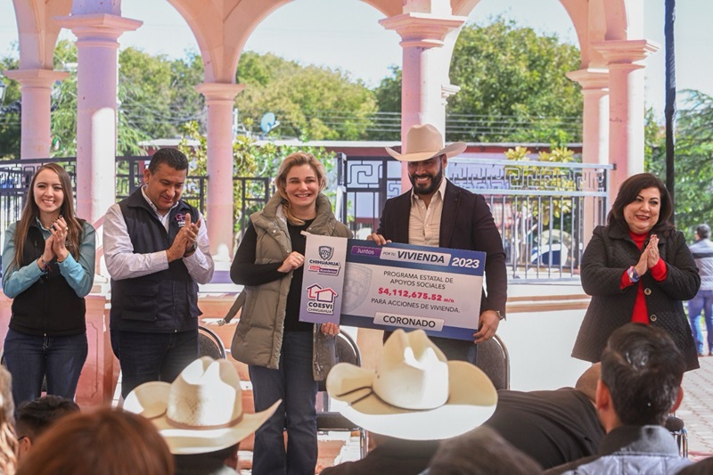 Chihuahua, Chihuahua – En seguimiento a su objetivo de materializar espacios dignos para el desarrollo de las familias chihuahuenses, la gobernadora Maru Campos encabezó en el municipio de Coronado, el arranque del programa “Juntos por tu vivienda 2023”.