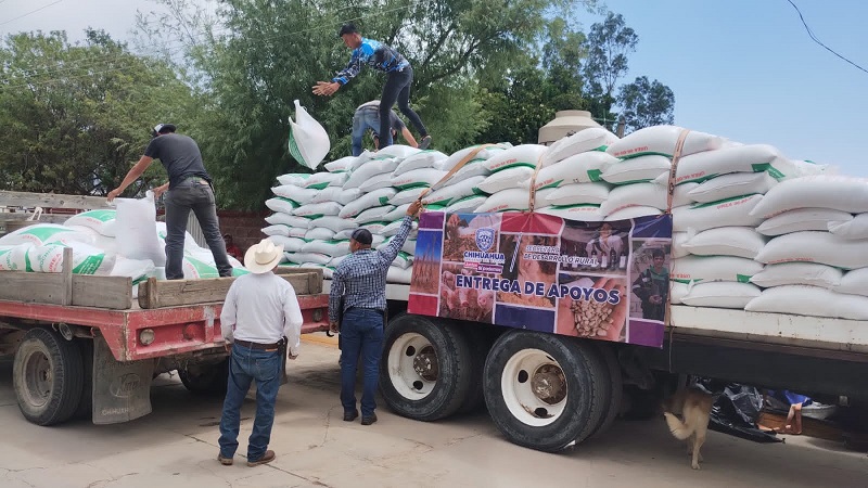 La entrega de fertilizantes comenzó el mes de abril en los municipios de Saucillo, Madera, Jiménez, Bocoyna, Moris, Cuauhtémoc, entre otros, con cerca de 2 mil 718 toneladas repartidas entre más de 2 mil 500 productores.