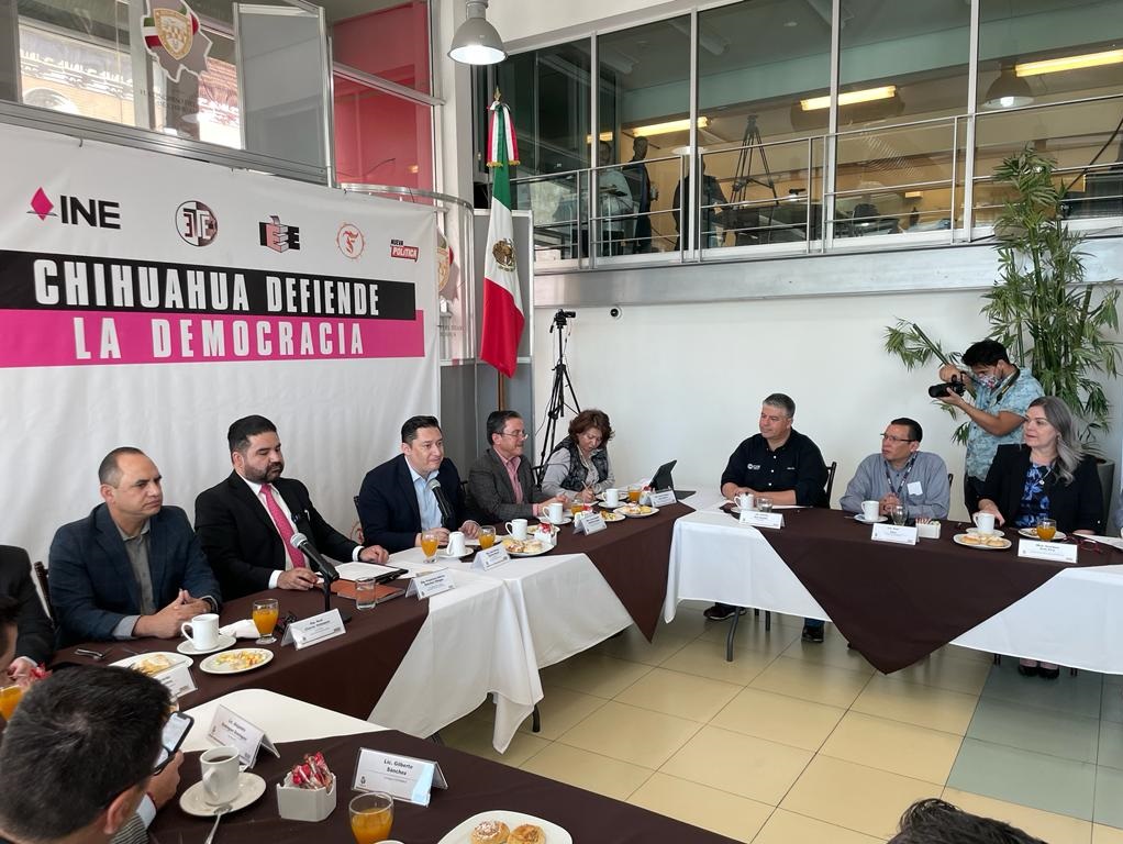 Chihuahua, Chihuahua.- El Presidente del Comité Directivo Estatal del Pan en el Estado de Chihuahua, Gabriel Díaz Negrete, al participar en el primer encuentro “Chihuahua Defiende la Democracia”, realizado en la sede del Congreso del Estado, donde fueron invitados funcionarios electorales y líderes de partidos políticos, puntualizó que todas las fuerzas políticas de la mano con la sociedad civil, deben seguir en la lucha de nuestra democracia, ante los intentos de Morena para consumar su plan de destrucción del Instituto Nacional Electoral.