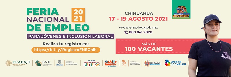 Chihuahua, Chihuahua – En el marco del Día Internacional de la Juventud, el Gobierno del Estado de Chihuahua, a través de la Secretaría del Trabajo y Previsión Social (STPS), invita a participar en la Feria de Empleo Virtual para Jóvenes e Inclusión Laboral 2021 en la ciudad de Chihuahua y en la 3ª. Feria de Empleo Virtual de Ciudad Juárez.