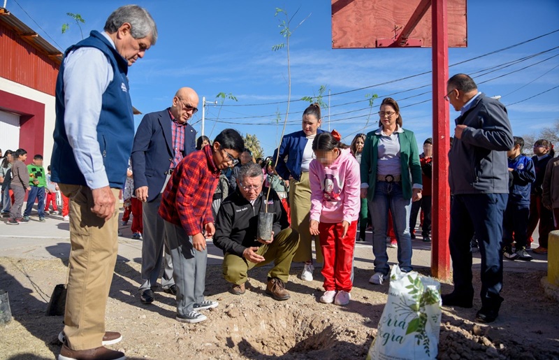 El delegado de SDUE en zona norte, Marco Antonio Cedillo, señaló que el próximo mes de marzo volverán a la misma institución para terminar de plantar más de 50 árboles, entre ellos frutales y de ornato, sumando a las casi 20 mil plantas forestales que se han entregado en Ciudad Juárez, en la actual administración.