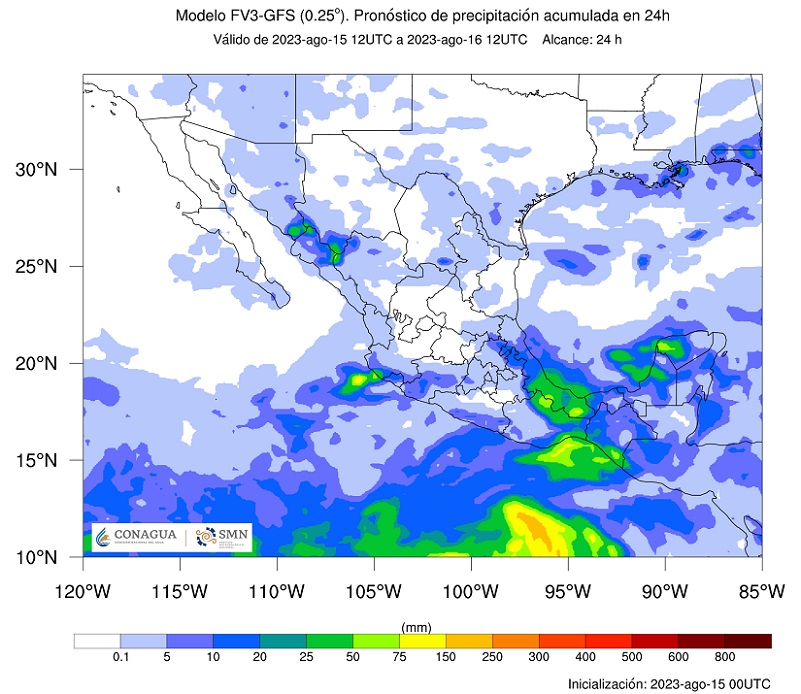 Mientras que en Guadalupe y Calvo se prevén precipitaciones de moderadas a puntualmente fuertes, en los municipios de Uruachi, Chínipas, Guazapares, Urique, Batopilas, Morelos y Balleza, habrá lluvias de dispersas a moderadas con intervalos de chubascos.
