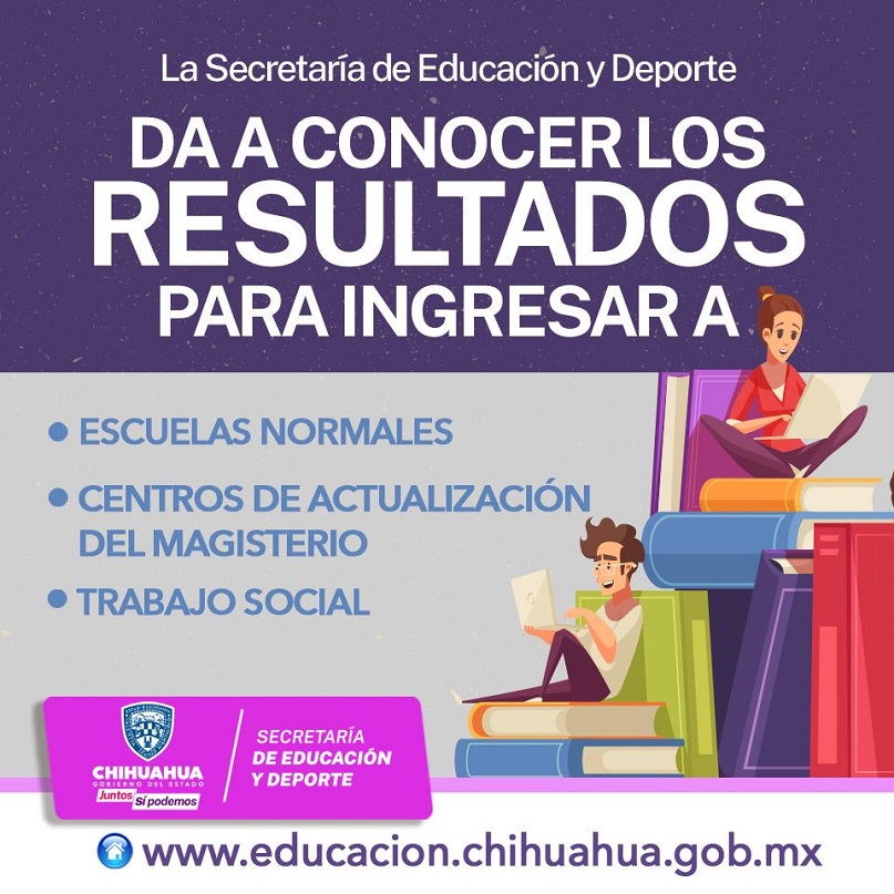 Chihuahua, Chihuahua – La Secretaría de Educación y Deporte (SEyD), informa que hoy domingo 16 de julio fueron publicados los resultados de ingreso a escuelas normales, formadoras de docentes y de Trabajo Social, para el ciclo escolar 2022-2023.