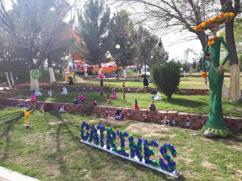 Ciudad Juárez, Chihuahua – Entre altares, pasillos llenos de color, presentaciones artísticas y convivencia familiar se realizó con éxito el festejo de día de muertos en el Parque Central Poniente, en donde también se hizo la entrega de dulces a niños.