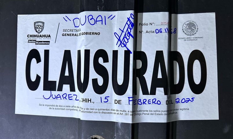 Estas inspecciones dieron como resultado un total de 20 clausuras: 6 fueron en Chihuahua, 1 en Parral y 13 en Ciudad Juárez.