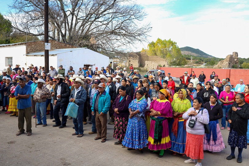 Las y los beneficiarios escucharon el mensaje de las autoridades, que estuvo a cargo del secretario de Pueblos y Comunidades Indígenas, Enrique Rascón; el alcalde de Balleza, Augusto Medina; el diputado local Noel Chávez, y el presidente seccional de Baquiriachi, José Ángel Javalera.