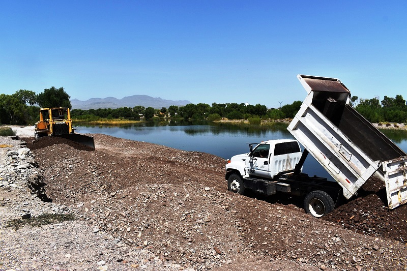 Los trabajos se llevan a cabo con personal especializado, tractores D8R, excavadoras de largo alcance y camiones de volteo para el traslado de los materiales, que suman un volumen mayor a los 55 mil metros cúbicos.