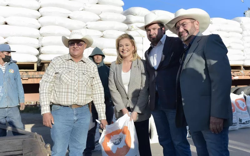 Chihuahua, Chihuahua – La gobernadora Maru Campos Galván encabezó la Reunión de Consejo de la Unión Ganadera Regional de Chihuahua (UGRCh), donde hizo patente su apoyo a los proyectos de esta organización y realizó la entrega de costales de maíz, con los cuales la Secretaría de Desarrollo Rural apoya a este sector de la economía chihuahuense.
