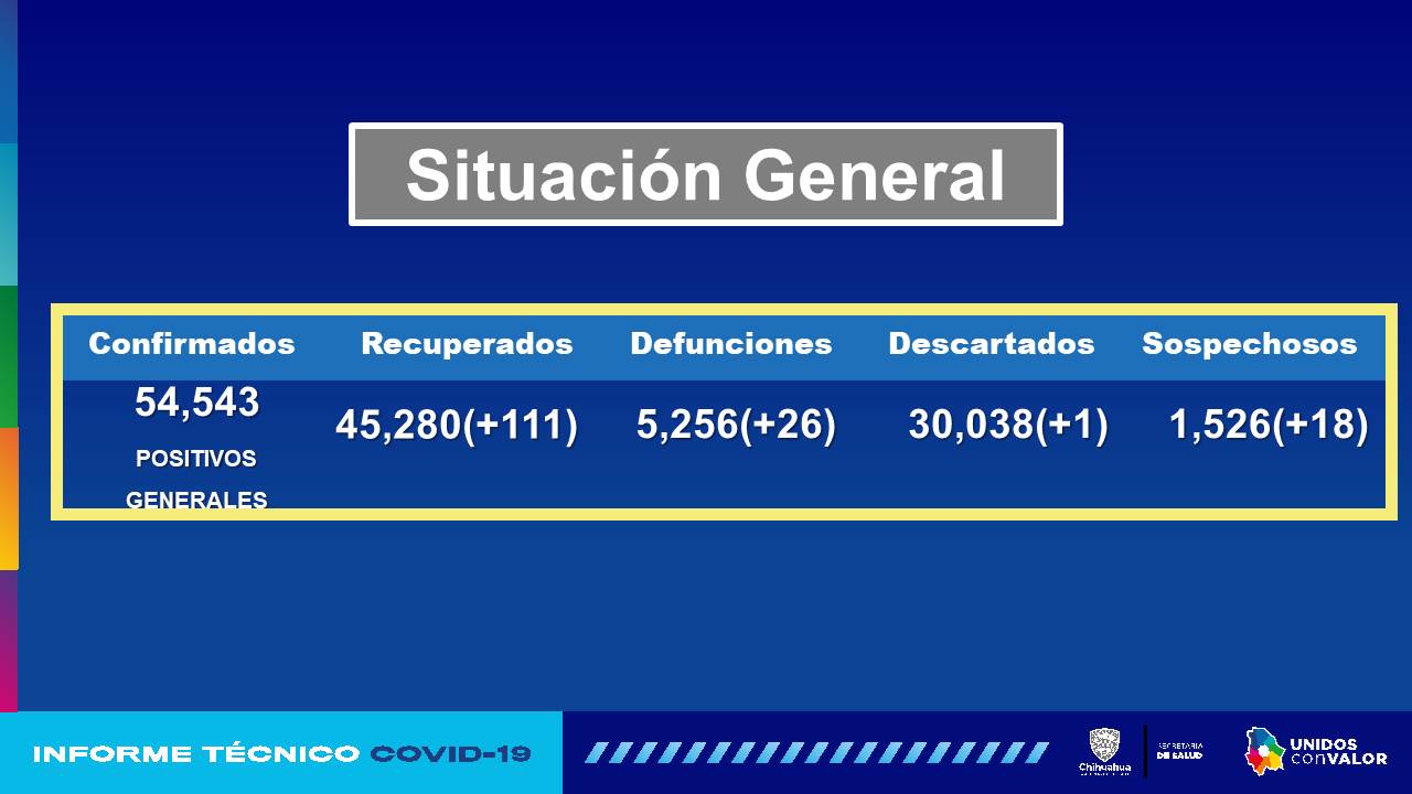 Chihuahua: Dan positivo 185 personas más y se confirman 26 decesos en las últimas 24 horas; Chihuahua es el municipio con más casos confirmados activos con 283, seguido de Juárez con 76