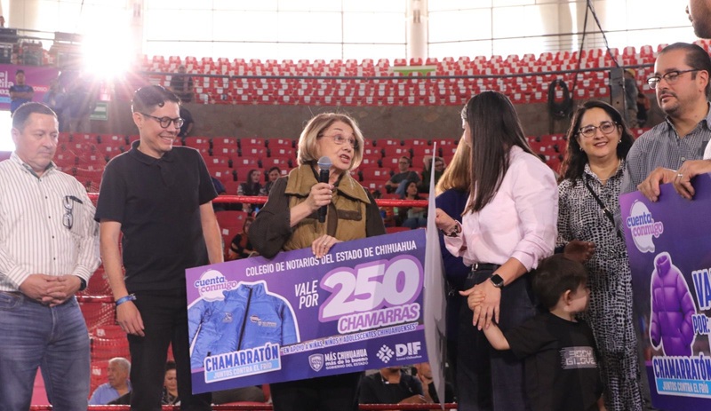Chihuahua, Chihuahua – Gracias a la participación de la ciudadanía y de los aliados del sector privado, este domingo en el Chamarratón “Juntos contra el Frío”, organizado por el DIF Estatal, se recolectaron más de 7 mil chamarras que serán destinadas a niñas y niños de la Sierra Tarahumara.
