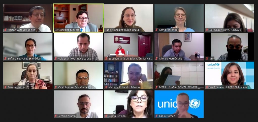 En esta reunión, celebrada de manera virtual,  se contó con la participación del titular de Educación en Puebla, así como de los subsecretarios de Chiapas y Baja California, además de funcionarias y funcionarios de la UNICEF y de la SEP.