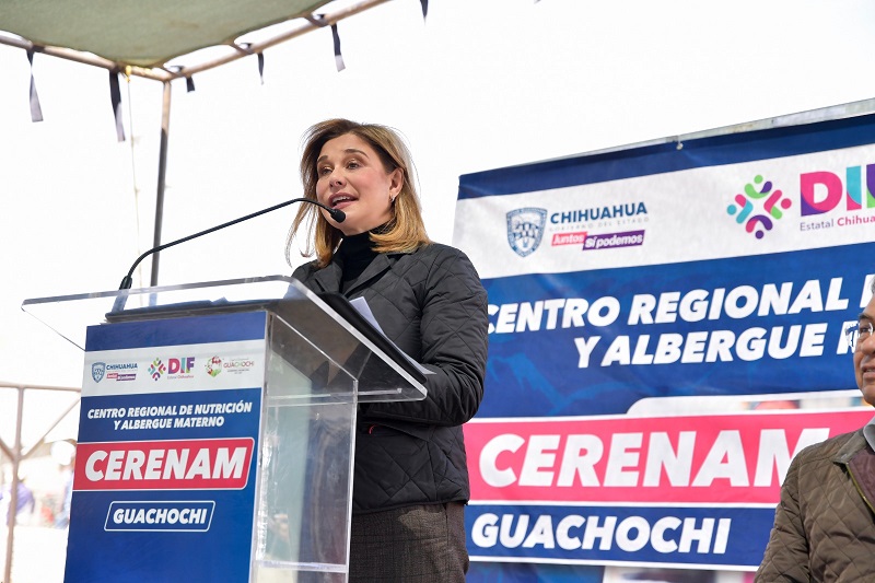 Chihuahua, Chihuahua – La gobernadora Maru Campos asistió a la ceremonia de entrega de nuevo equipamiento en el Centro de Regional de Nutrición y Albergue Materno (CERENAM) en Guachochi, en compañía de la presidenta del DIF Estatal, María Eugenia Galván Antillón.