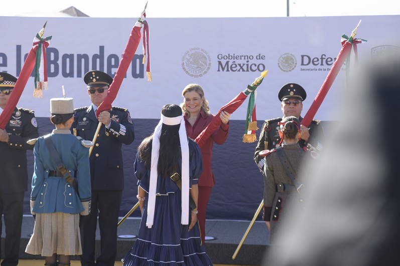 Durante el acto, en que 150 alumnas y alumnos de primaria y secundaria juraron su lealtad al lábaro patrio, afirmó que hoy más que nunca resulta indispensable lograr la unidad como nación.