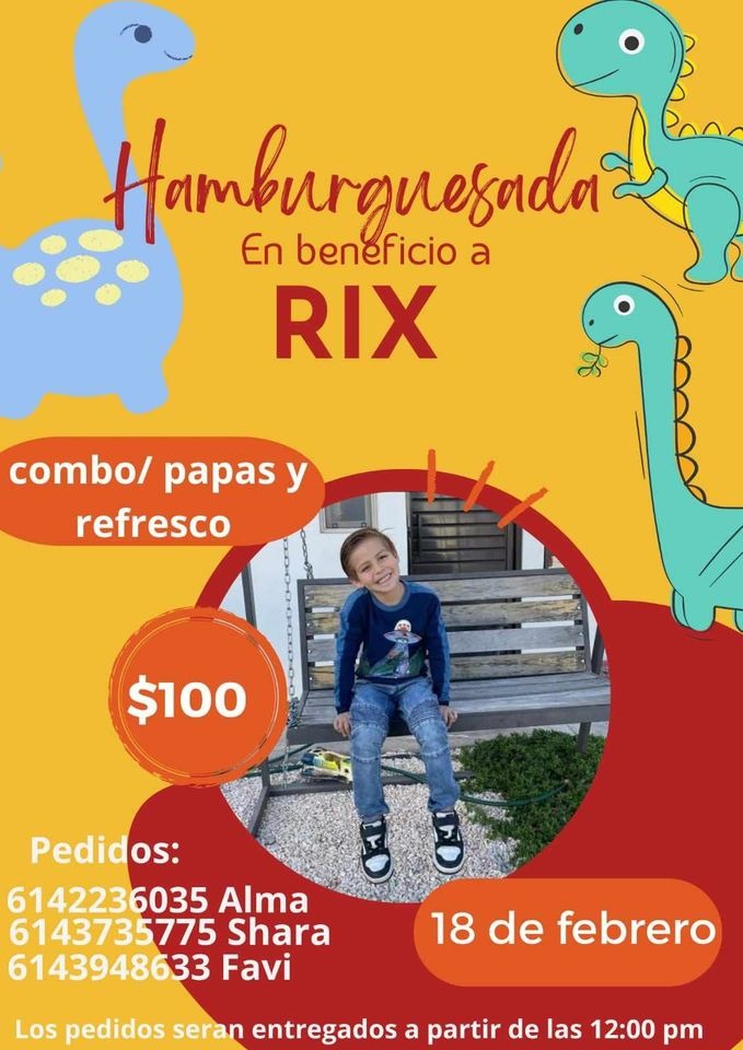 Debido a ello, la familia de Rix y amigos se organizaron para llevar a cabo actividades que les permita juntar dinero para solventar los numerosos gastos médicos, próximamente el día 18 de febrero se llevara a cabo una hamburguesada, cuyo costo del combos será de cien pesos y contara con hamburguesa, papas fritas y soda, papas y hamburguesa.