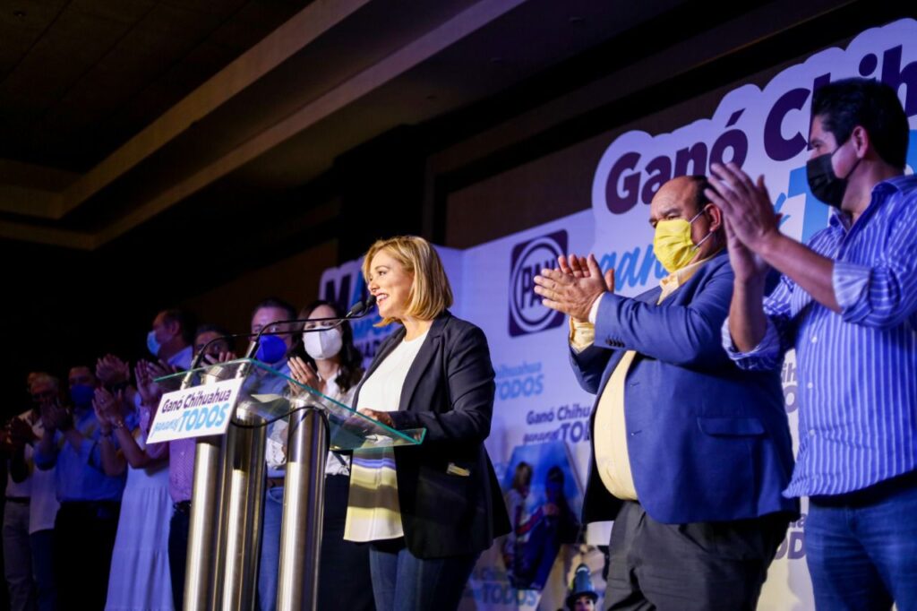 Chihuahua, Chihuahua.- Maru Campos, candidata a la gubernatura del estado por la coalición “Nos Une Chihuahua”, conformada por los partidos políticos PAN y PRD, afirmo “tenemos una ventaja irreversible”, en conferencia de prensa después del cierre oficial de las casillas.