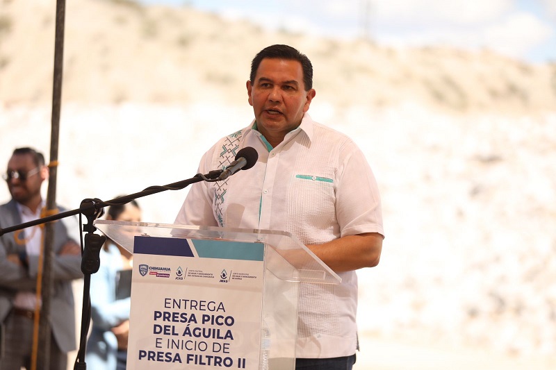 Ciudad Juárez, Chihuahua – El Presidente Municipal, Cruz Pérez Cuéllar, acompañó este día a la Gobernadora del Estado, María Eugenia Campos Galván, en la entrega de la presa Pico del Águila y la Presa Filtro II, en la cuenca del Arroyo de las Víboras, al norponiente de la ciudad.