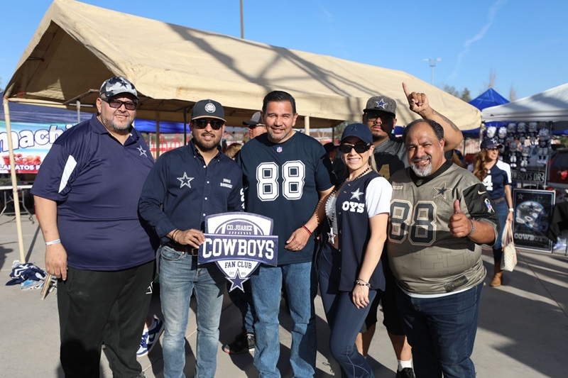 Ciudad Juarez, Chihuahua – Ayer por la tarde, el Presidente Municipal, Cruz Pérez Cuéllar, asistió a la Plaza de la Mexicanidad para la fotografía oficial del club de fans de los Vaqueros de Dallas. Al evento acudieron alrededor de 400 personas, quienes, en un ambiente familiar, disfrutaron de una convivencia con comida, música y la transmisión del partido entre los Vaqueros y los 49ers de San Francisco.
