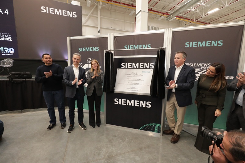 Mencionó que Siemens, que hoy inaugura una ampliación, cuenta con 35 años trabajando en la frontera, por lo que es importante que el Gobierno Municipal siga apoyando a esta y otras empresas, además de apostarles, ya que la economía de Juárez está sostenida fundamentalmente por la industria.