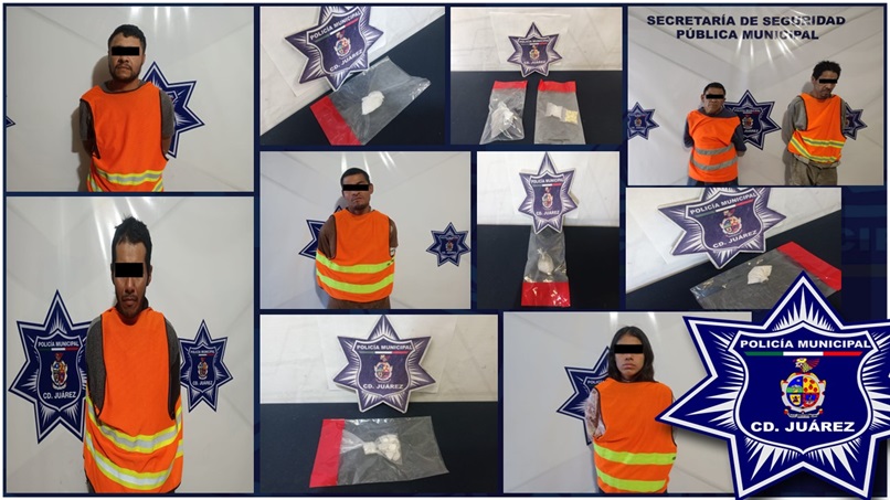 Ciudad Juarez, Chihuahua – Elementos de la Secretaría de Seguridad Pública Municipal capturaron a seis personas, por su presunta responsabilidad en la comisión de delitos contra la salud en su modalidad de narcomenudeo.