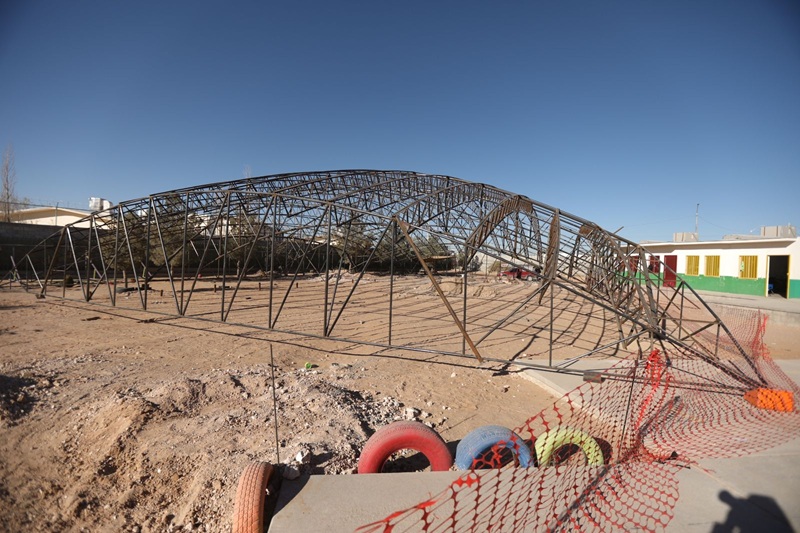 Ciudad Juarez, Chihuahua – La Dirección General de Obras Públicas trabaja en la construcción de un domo en el Jardín de Niños Cusárare, ubicado en la colonia Urbivilla Bonita, obra en la que se lleva un avance del 38 por ciento, con el levantamiento de la estructura.