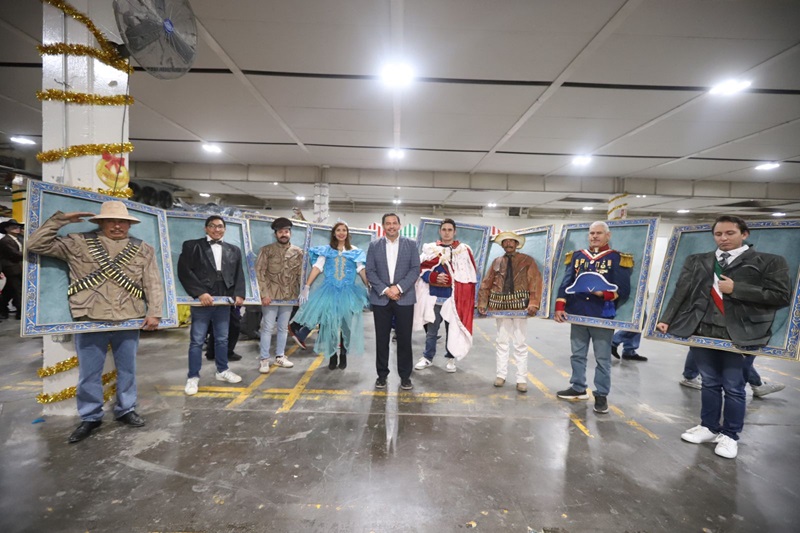 Entre los contingentes presentados, desde Adelitas, pachucos, hasta personajes de la industria maquiladora, el alcalde expresó su agradecimiento a los coordinadores y al empresario Héctor Nuñez Polanco por facilitar las instalaciones.